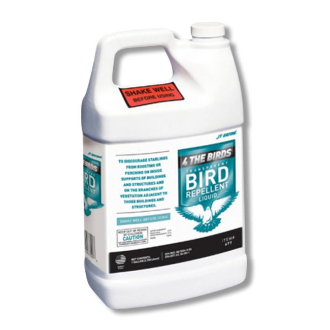 4 The Birds Liquid Repellent, manufactured by JT Eaton, is a humane bird repellent that offers relief to do-it-yourselfers who face bird gatherings on their property without harming the birds.