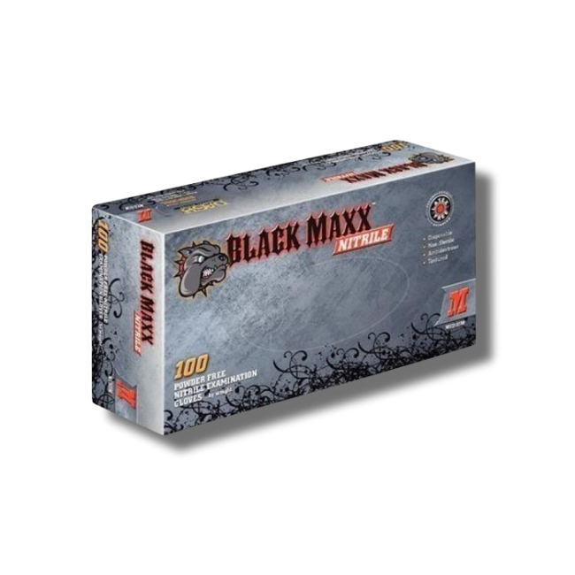 Black Maxx Gloves are disposable gloves that come black in color. The gloves are powder free and have a textured surface. 100 gloves per box.