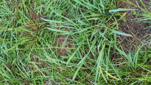Search for outbreaks of dallisgrass weed. The weed appears in star-like clumps with seed stalks with three to five finger-like segments covered with fine, silken hairs.