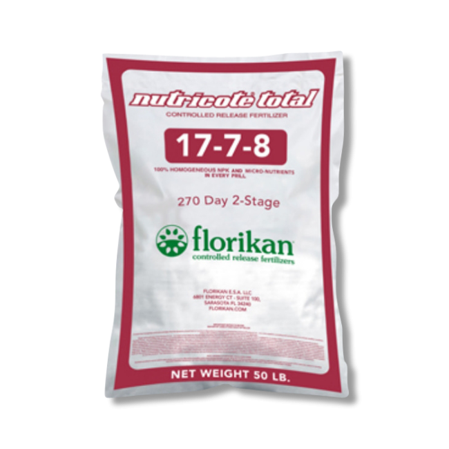 Florikan with Nutricote Total 17-7-8 270 Day 2, manufactured by Florikan, is a excellent granule fertilizer that contains a powerful polymer resin for a continuous slow-release of nutrients throughout the ornamentals crop cycle.