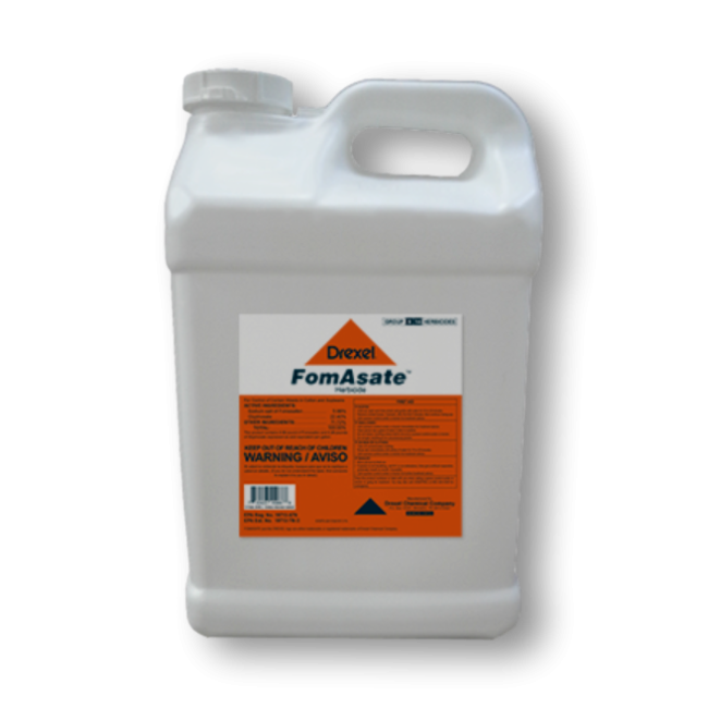 FomAsate Herbicide, manufactured by Drexel, is a liquid formulation for the control of broadleaf, grassy and sedge weeds in cotton and soybean crops.