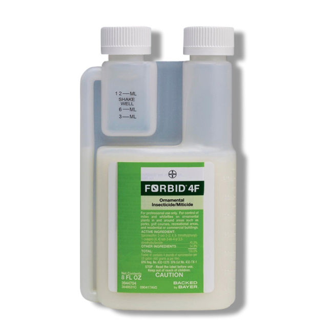 Forbid 4F Ornamental Insecticide Miticide, manufactured by Bayer, is a miticide used to control mites that are resistant to other pesticides. It can be sprayed directly onto the foliage of plants the mites are targeting to kill them.
