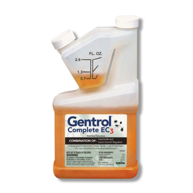 Gentrol Complete EC3, manufactured by Zoecon, is a liquid broad-spectrum insecticide that provides a unique form of control of flying and products pests like cockroaches or confused flour beetles from the inside of buildings and structures.