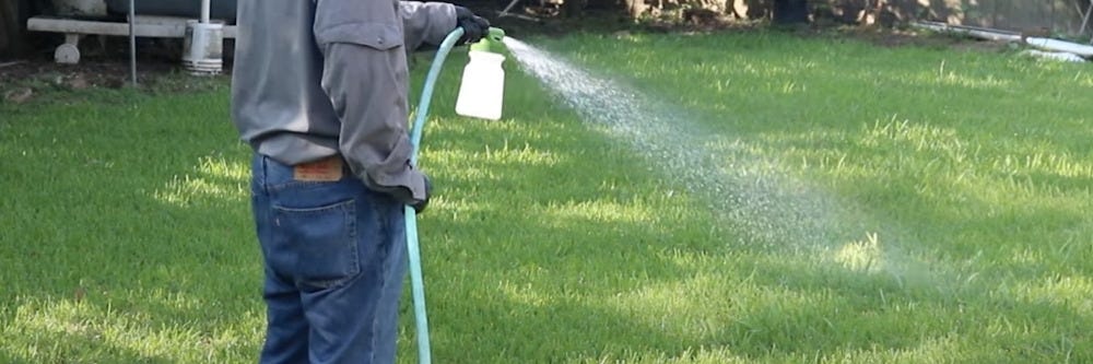 Mix the product with water in a hose-end sprayer, backpack sprayer, or handheld pump sprayer. For larger residential properties, we recommend using a hose-end sprayer.Â