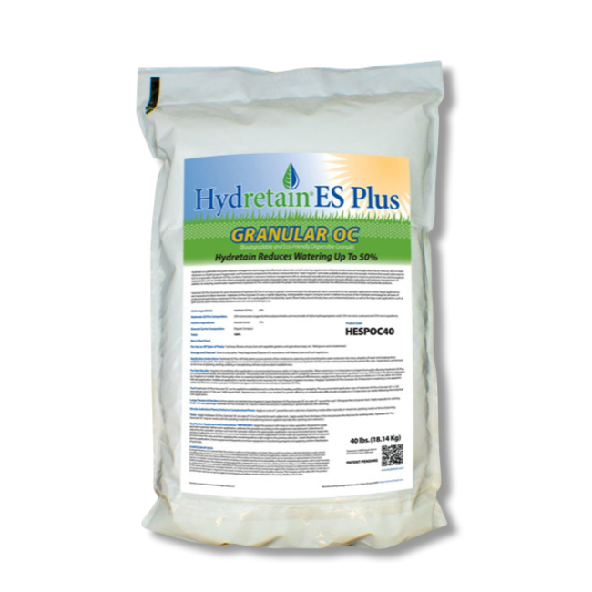Contains a proprietary blend of the Hydretain soil moisture management technology enhanced with a superior, naturally derived soil surfactant. This unique product works by converting soil moisture vapor that would otherwise be lost to evaporation into plant useable water droplets. In addition, Hydretain ES Plus Granular OC will also provide the proper amount of soil moisture necessary for most pesticides and fertilizers.