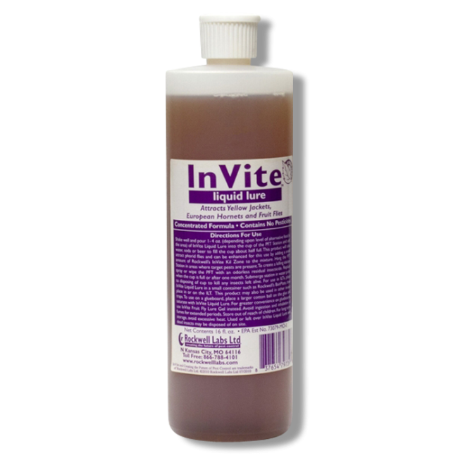 InVite Liquid Lure is manufactured by Rockwell Labs and is a unique non-toxic liquid attractant that is used to help monitor and trap infestations of various types of flying insects. Whether you are using a trap or an insecticide, applying just a small amount of InVite Liquid Lure will make your target pest unable to resist approaching and succumbing to whatever trap or poison you have in place. Use it to aid in making your control products, such as a PFT Station, work even better.
