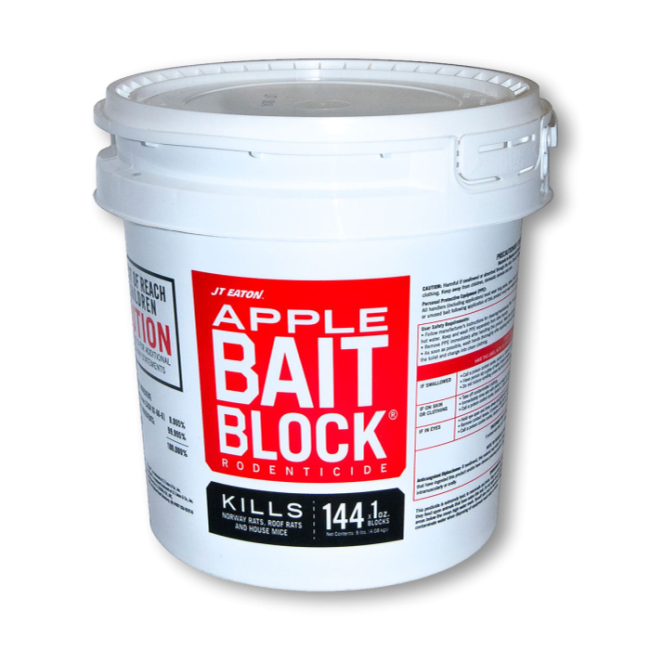 JT Eaton Apple Bait Blocks are powerful rodenticide bait blocks formulated with a highly palatable apple flavor to lure and control rats and mice within a few days. Contains the active ingredient Diphacinone 0.005% which works to prevent blood from clotting leading to internal bleeding and death in rodents.