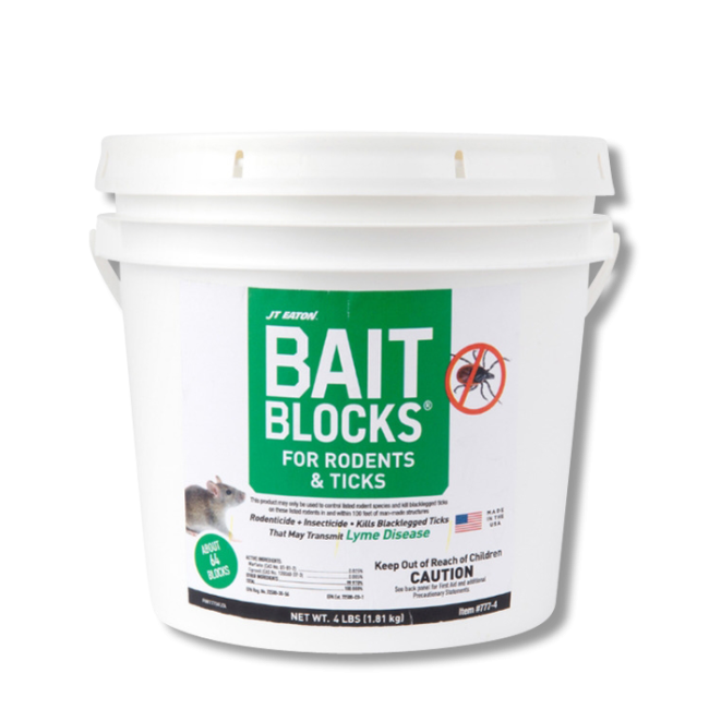 JT Eaton Bait Blocks For Rodents and Ticks is a rodenticide and insecticide combination that effectively kills rodents and their black-legged ticks in one easy-to-use, economical product.