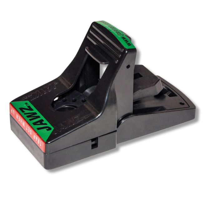 JT Eaton Jawz Plastic Rat and Chipmunk Traps is a high tension spring snap trap that easily controls small to large rodent infestations. Combined with its extra safety measures such as its ability to be anchored with its holes makes this a special heavy duty snap trap.