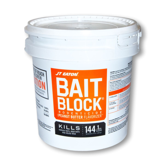 JT Eaton Bait Blocks with peanut butter flavor are ideal around residential and industrial areas or where large infestations are found. They will control label-listed rats or mice up to 100 feet from a home or building structure.