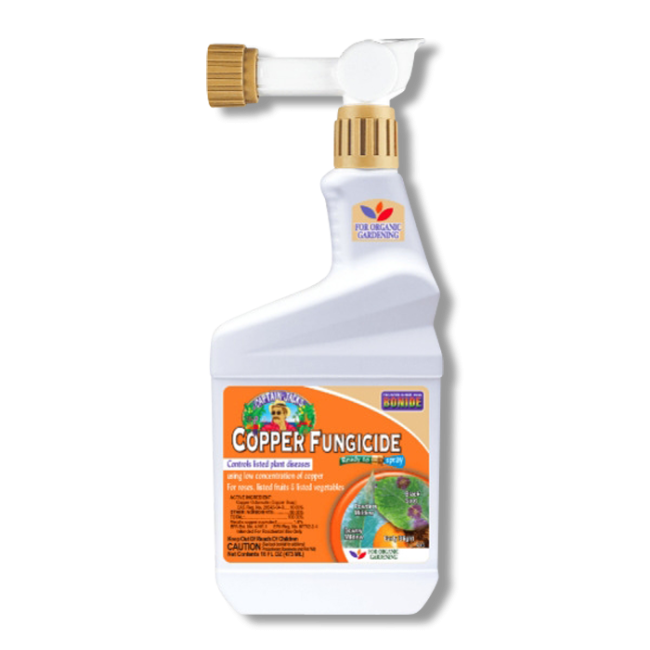 Incredibly easy to apply, this low concentration of copper fungicide arrives ready to use in its convenient hose-end bottle. Simply attach to a garden hose then point and spray on foliage at the beginning stages of disease outbreak all the way to the day of harvest for the plant.