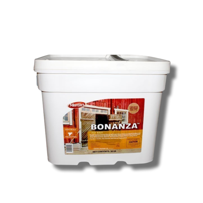 Martin's Bonanza Fly Bait can be applied to control house flies in and Around Areas Such as livestock facilities and stables, warehouses, dumpsters, recycling areas, and Outside Non-Food Contact Areas of restaurants, bakeries, supermarkets, grease pits, or loading docks.