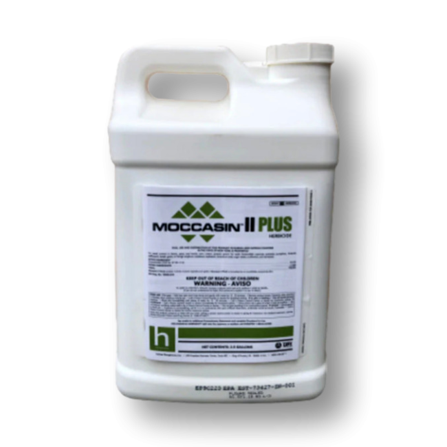 Moccasin ll Plus Herbicide, manufactured by United Phosphorous, is an economical pre-emergent herbicide with excellent residual soil activity against a broad-spectrum of broadleaf and grassy weeds in commercial crops.