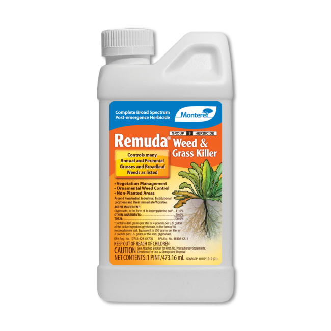 Monterey Remuda Weed & Grass Killer will kill numerous emerged weeds such as nutsedge all the way to its root with its commonly used active ingredient glyphosate 41.0%.