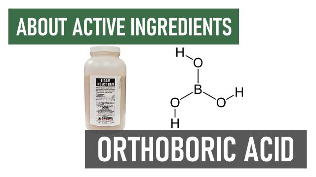 Orthoboric acid works to kill pests when ingested or in contact. This ingredient disrupts stomach activity and impacts the insect's central nervous system when eaten. It is also very abrasive to insects, destroying their exoskeletons and rendering them unable to function.