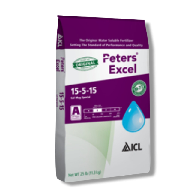 Peters Excel 15-5-15 Cal Mag Special with Black Iron, manufactured by ICL Specialty Fertilizer, is an excellent water soluble fertilizer that contains high nitrate and low phosphate levels and three chelated irons to encourage healthy, compact growth within potted ornamental plants and bedding plants.