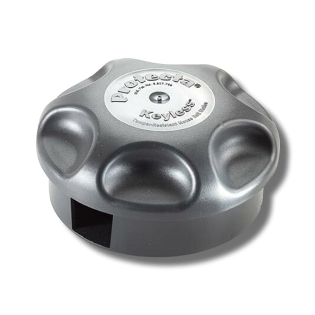 Protecta Keyless Mouse Bait Station from Bell Laboratories is a small, keyless(squeeze & twist) mouse bait station that still offers tamper-resistance. The circular design provides 3 entry points, allowing mice to feed simultaneously. Protecta Keyless holds up to two standard size block baits on securing pegs. A great option if you want to be discreet placing rodenticides.