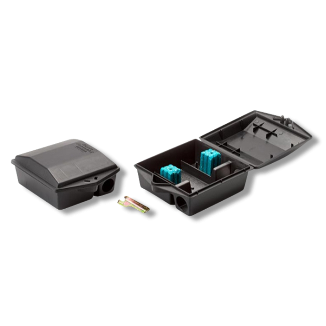 This universal Protecta Mouse Bait Station has enough posts and room to hold up to 4 bait blocks, 2 snap traps, or Trapper Mini-Rex. It is tamper proof and comes with a key, so that the station can be locked to keep children or pets from being harmed.