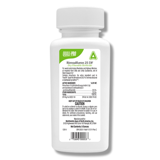 Rimsulfuron 25 DF, manufactured by Quali-Pro, is a pre-emergent and post-emergent herbicide designed to control grassy and broadleaf weeds in various sites, especially warm-season landscapes.