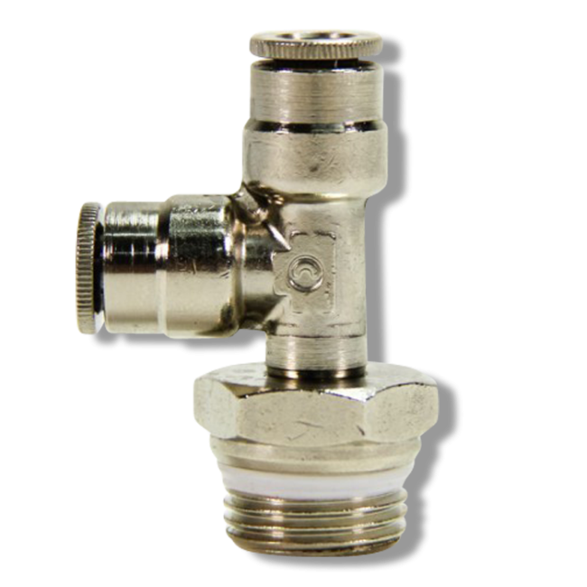The Run Swivel Tee - 3/8" Threaded Male x 1/4 PTC is designed to connect to the pump discharge port on a Mosquito Misting system when it needs to be replaced. This part can swivel so you can position your pump exactly how you want it. If your pump is in need of replacement, this run swivel tee is needed to get your unit back up and running.