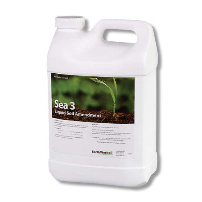 Sea 3 Organic Fertilizer, manufactured by EarthWorks, is a unique liquid soil amendment with mineral-rich nutrients that produces remarkable results in turf, shrubs, and trees.