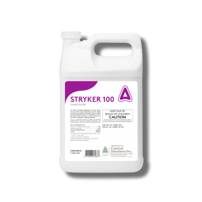 Stryker 100 is manufactured by Control Solutions Inc and is a versatile insecticide concentrate that can be applied either indoors or outdoors as a direct, space, area or contact spray. Depending on the the insects and areas to be treated, this product can also be applied through mechanical aerosol (non-metered) or ultra-low volume (ULV) generators, as well as thermal and conventional fogging or spraying equipment. Use Stryker to treat for bed bugs, beetles, spiders, roaches and a wide list of other common household pests.