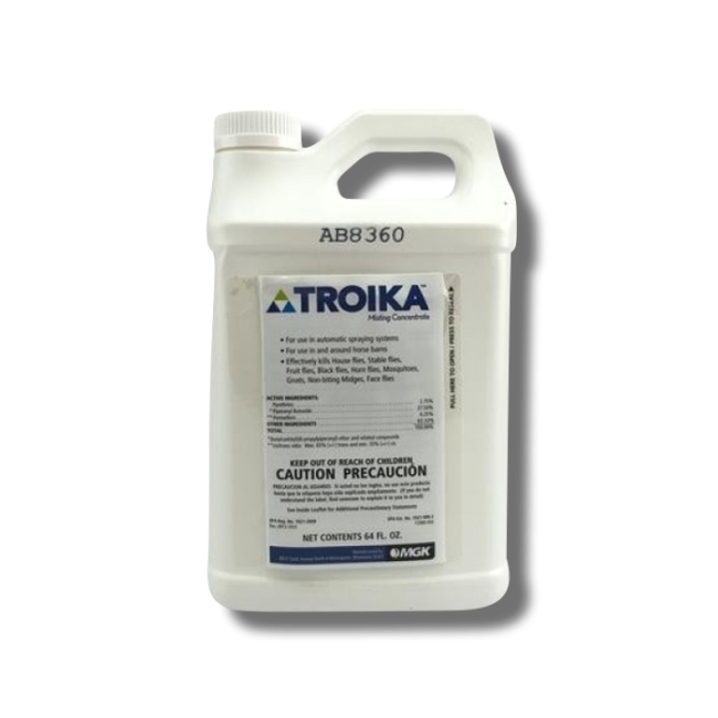 Troika Misting Concentrate is a effective insecticide used for controlling flying pests like mosquitos, gnats, and flies. This product is designed for use in and around barns and other livestock areas.
