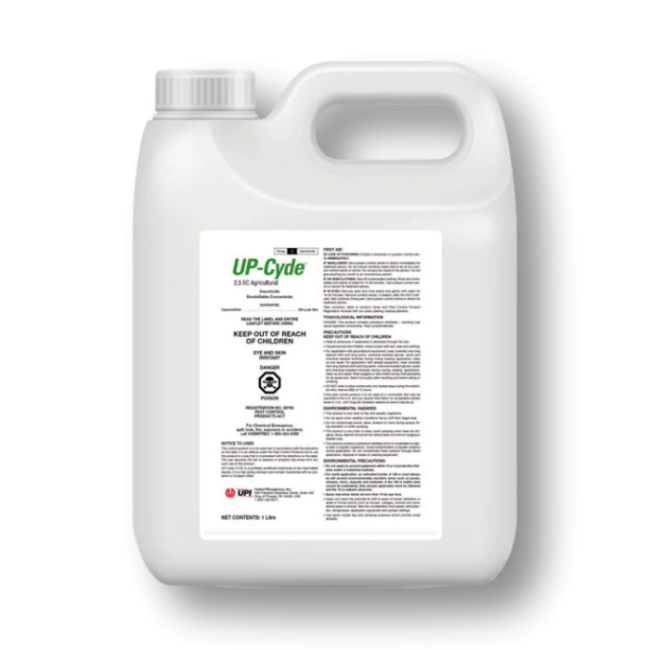 UP-Cyde 2.5 EC Agricultural Insecticide can be used for cotton, head and stem brassica, leafy brassica greens, head lettuce, bulb vegetables, and pecans.