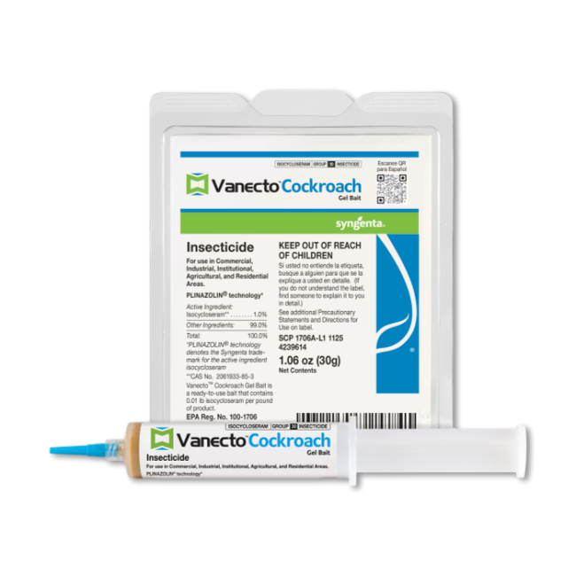 Vanecto Cockroach Gel Bait is features Plinazolin, the newest active ingredient technology. It’s designed to help manage cockroach populations where resistance is a concern. It is highly palatable and can be used indoors or outdoors.
