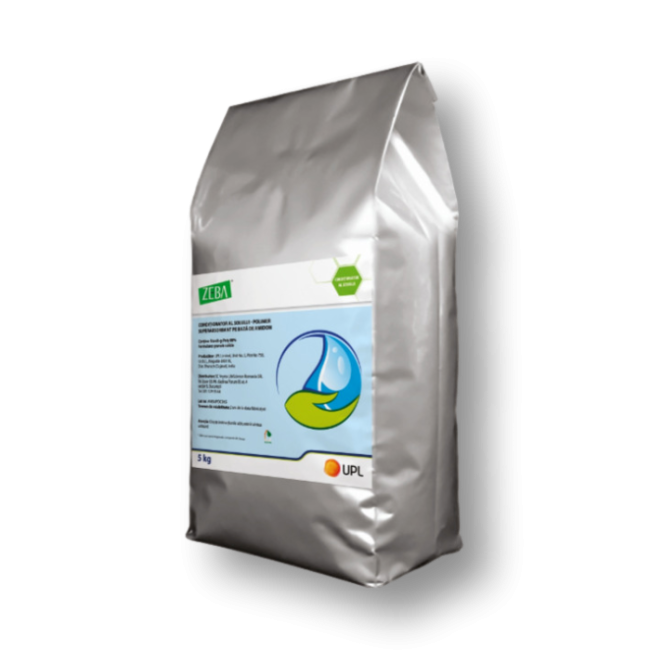 Zeba SP, manufactured by United Phosphorous, is a superabsorbent polymer that absorbs and retains water, releasing it gradually to plants as needed.